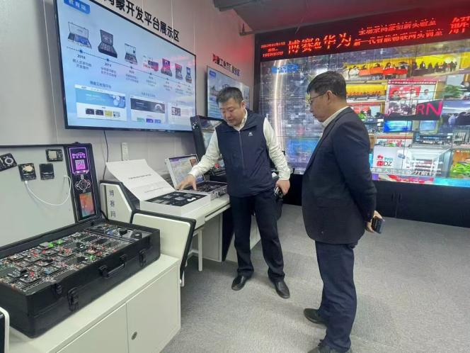 杨云院长一行首先参观了博赛数字科技集团总部展厅,深入了解企业发展历程、核心技术布局及人才培养战略。在智能化展厅中,杨云院长一行详细了解了企业在开源鸿蒙生态建设、行业应用解决方案等方面的最新成果。董事长董良重点演示了鸿蒙系统在智能终端、工业物联网等领域的创新应用案例,展示了国产操作系统在信创产业中的重要价值。