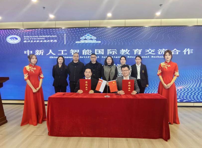 此次签约是学校推进人工智能教育国际化的重要举措。根据协议,双方将联合开发专业课程体系,共建师资培训机制,并计划开展师生互访、学术研讨等深度交流。合作项目预计为学子提供赴新研修、跨国企业实习等多元化发展通道,助力构建贯通中外的人工智能人才培养体系。据悉,新加坡明辉联合学院长期深耕人工智能与金融科技领域教育,其课程体系以产教深度融合著称,与纳斯达克上市企业华钦科技集团保持长期战略合作。双方共同搭建的"教育+产业"人才输送通道,已为亚太地区金融机构培养逾千名专业技术人才。在全球产业智能化转型背景下,浙江东方职业技术学院通过搭建跨国合作平台,持续探索职业教育国际化发展新路径,为区域数字经济高质量发展注入人才动能。