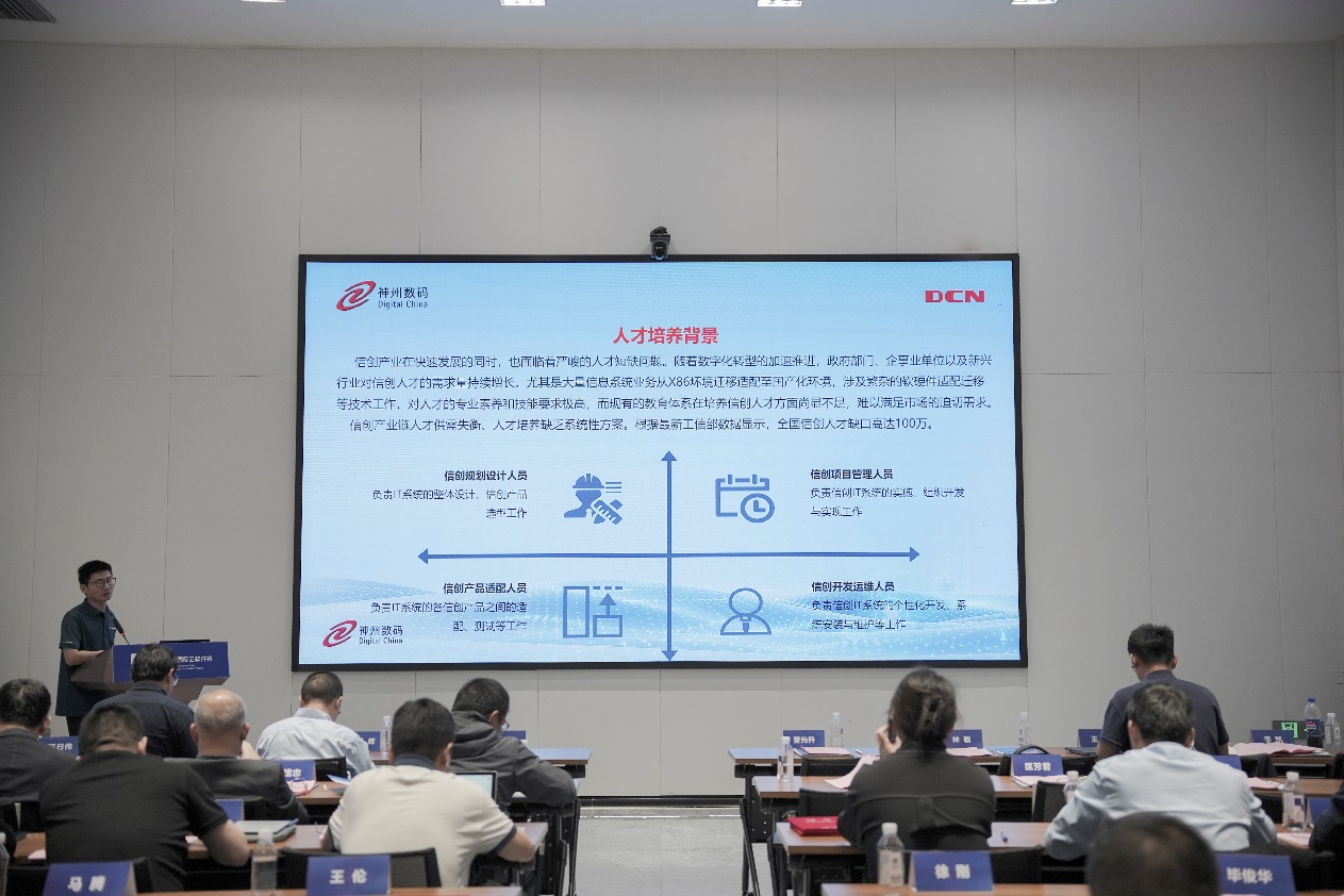 神州数码信创教育行业解决方案总监李凯以《智创生态 产教共擎:神州信创产业人才赋能体系构建》为主题的讲座。通过智创生态推动技术突破,以产教融合实现人才精准供给,为数字经济高质量发展注入核心动力。