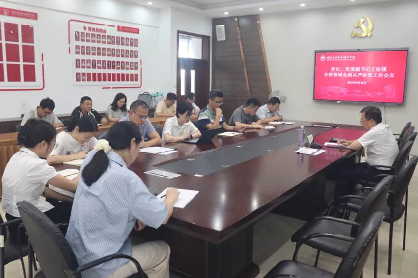 王佑镁对下步从严治党工作提出明确要求:一是要强化政治引领。牢固树立“一岗双责”意识,将党建责任压紧压实,将党建工作与“双高”建设、重点任务紧密结合。二是要加强组织建设。通过创建优秀党建品牌,开展务实有效的党建活动,激发教职员工的积极性和创造力,引领他们积极投身学校高质量发展。三是要注重教育引导。加强师德师风建设,通过学习引领和干事创业,培养政治素质过硬、业务能力精通的双高水平师资队伍。四是要完善监管机制。全面梳理工作中存在的难点、痛点问题,紧密结合巡查整改要求,及时修订不适应学校新发展要求的制度,构建科学规范的内部治理体系。五是要严守纪律底线。强化政治学习和廉洁教育,排查招生、评审等关键领域廉政风险,警示教职工规范行为,严守纪律,共同营造风清气正的校园生态。